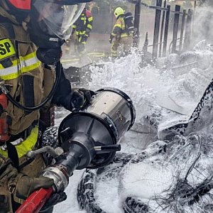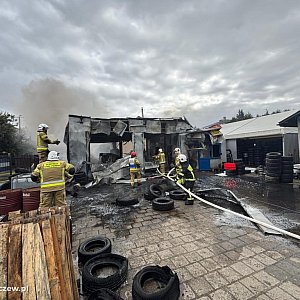 Po przyjeździe na miejsce strażacy natychmiast skierowali 3 strumienie wody w stronę żywiołu, a później pianę gaśniczą. Następnie, z sukcesem, zajęli się obroną bliskiej wiaty z oponami. Po 15 minutach stwierdzono, że ogień został opanowany. Kolejnym krokiem było dogaszanie. W wyniku zdarzenia nikt na szczęście nie został się ranny.