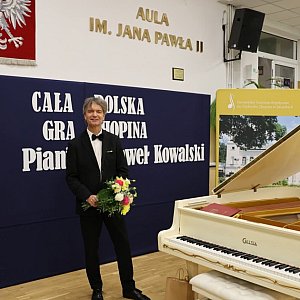 W gościnnych murach szkoły w Iłowie rozbrzmiały utwory Fryderyka Chopina w mistrzowskim wykonaniu Pawła Kowalskiego – wybitnego pianisty, którego talent, muzyczna mądrość i cierpliwość w budowaniu nastroju dostarczyły nam głębokich, niezapomnianych wrażeń. Jego interpretacje były pełne emocji, subtelności i artystycznej klasy, która poruszyła serca wszystkich obecnych. Szczególną radość sprawił nam aktywny udział młodzieży, która z ogromnym zainteresowaniem uczestniczyła w tym wyjątkowym spotkaniu z muzyką klasyczną. Takie wydarzenia są niezwykle ważne w procesie kształtowania wrażliwości artystycznej, rozwijania pasji oraz mądrego kierowania młodych ludzi w stronę kultury, sztuki i piękna. Wierzymy, że kontakt z muzyką na najwyższym poziomie inspiruje, uczy skupienia i otwiera drzwi do głębszego poznania świata. Jesteśmy ogromnie wdzięczni, że nasza szkoła została wybrana jako partner tego prestiżowego projektu. To dla nas wielkie wyróżnienie i powód do dumy. Dziękujemy organizatorom – Europejskiemu Centrum Artystycznemu im. Fryderyka Chopina w Sannikach oraz Fundacji PZU – za zaufanie i możliwość współtworzenia tego wydarzenia.