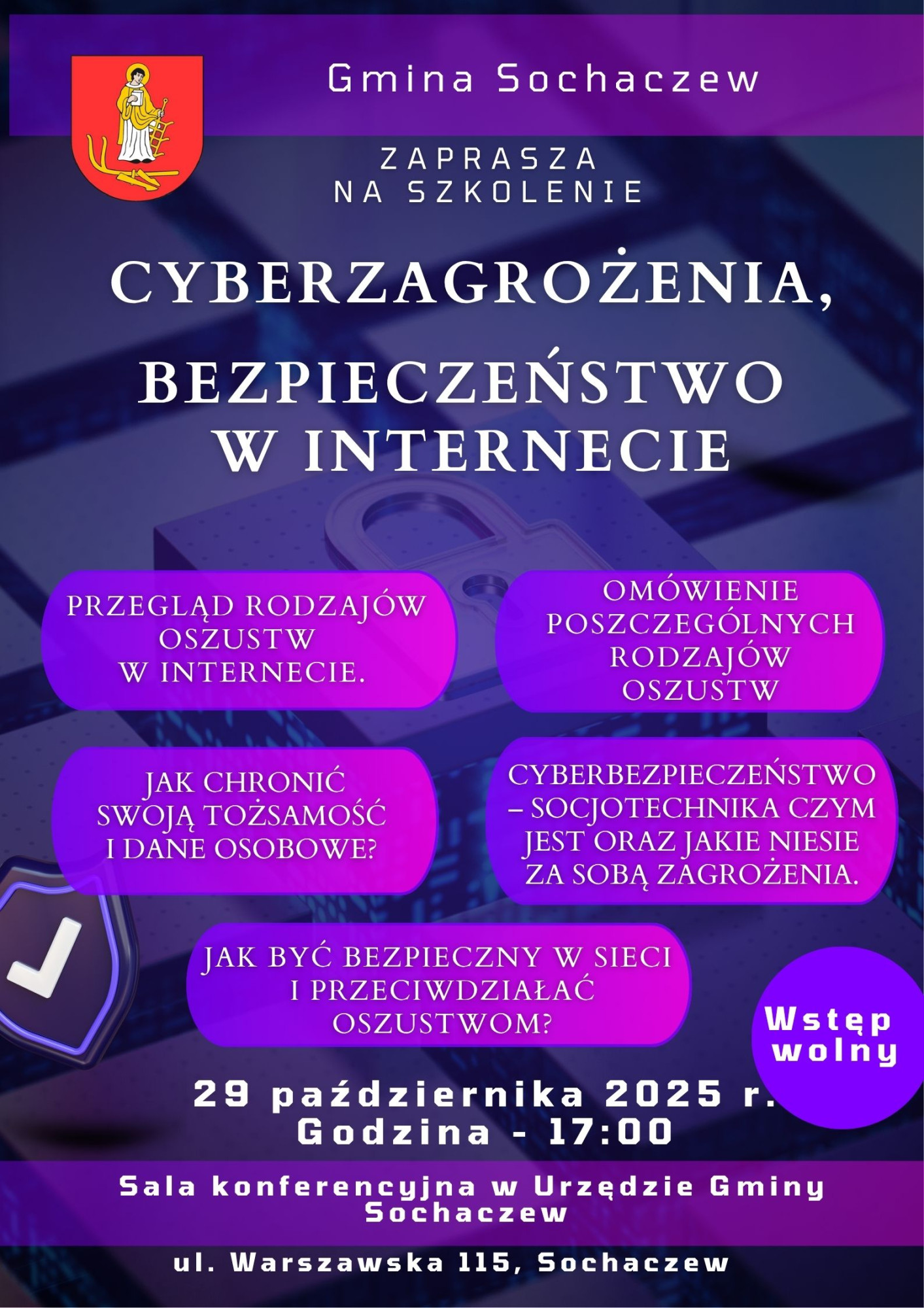 Cyberzagrożenia, bezpieczeństwo w Internecie, przegląd rodzajów oszustw w Internecie. To problematyka, którą poruszać będą eksperci podczas bezpłatnego szkolenia organizowanego przez Urząd Gminy Sochaczew. Ponadto na spotkaniu będzie można dowiedzieć się: