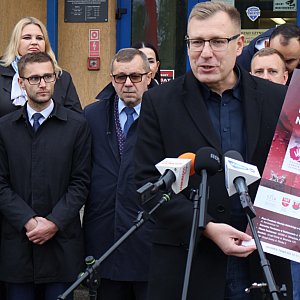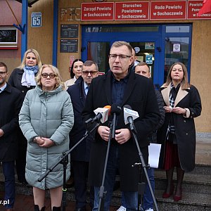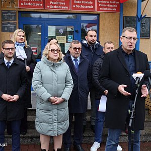 Pod budynkiem starostwa powiatowego w Sochaczewie, podczas specjalnego briefingu prasowego, poseł Maciej Małecki wraz z lokalnymi samorządowcami ogłosili inaugurację zbiórki darów dla Polaków mieszkających na kresach w ramach akcji „Świąteczna Paczka Rodakom na Wileńszczyźnie”.