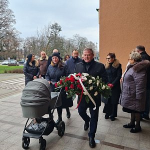 Następnie uczestnicy uroczystości udali się pod pomnik „Solidarności” przy Urzędzie Miejskim. Tu burmistrz mówił o brutalności władz komunistycznych: