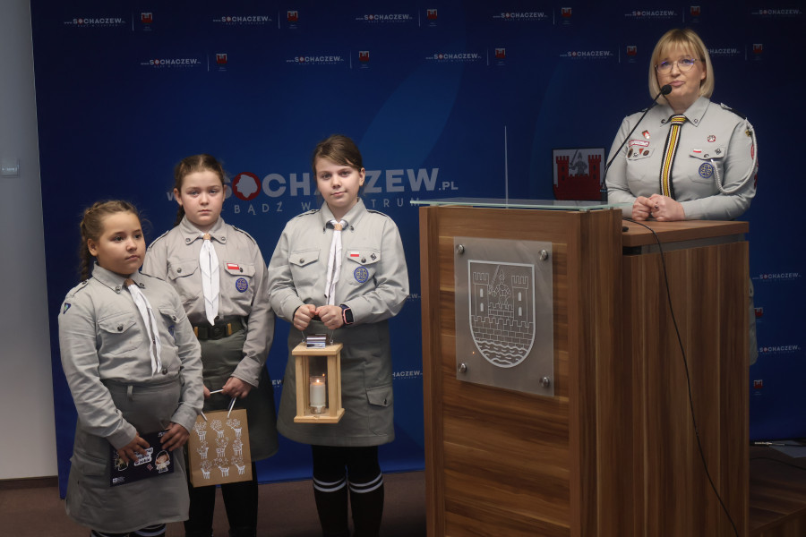 W ostatnich dniach Betlejemskie Światło Pokoju dotarło do sochaczewskiego ratusza. Stało się to tradycyjnie podczas sesji rady miejskiej. Światło na ręce burmistrza Daniela Janiaka oraz przewodniczącego rady Sylwestra Kaczmarka przekazała komendantka Hufca ZHP Sochaczew Anna Wasilewska wraz z harcerzami.