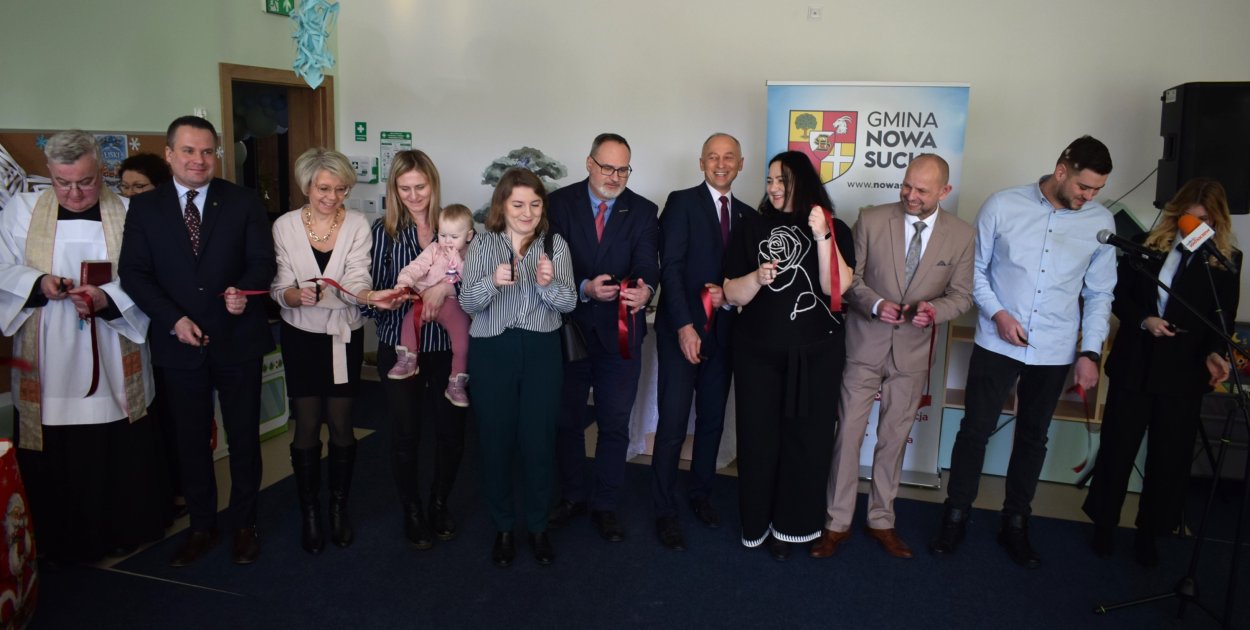 Żłobek w Kozłowie Biskupim oficjalnie otwarty. 30 grudnia nastąpiło przecięcie wstęgi. Na miejscu zgromadzili się samorządowcy z gminy Nowa Sucha na czele z wójtem Maciejem Mońką oraz zaproszeni goście: poseł Adam Orliński, dyrektor delegatury Urzędu Marszałkowskiego Grzegorz Dobrowolski, projektantka Agnieszka Pyrzanowska, wykonawca Przemysław Godosz z firmy Godbud, dyrektorki szkół i przedszkola z terenu gminy, radni, sołtysi i rodzice.