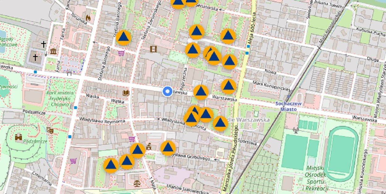 Rzeczywiście, aplikacja wyróżnia się prostotą. To w istocie mapa, w której wpisujemy interesującą nas miejscowość. Po przybliżeniu widoku pojawiają się kolejne Punkty Schronienia. W Sochaczewie dotychczas wyznaczono ich kilkanaście, ale będzie ich więcej – strażacy cały czas prowadzą weryfikację takich miejsc. To najczęściej piwnice bloków, równolegle trwają prace nad utworzeniem schronu z prawdziwego zdarzenia.