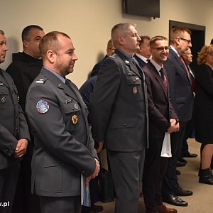 Komendant wyraził głęboką wdzięczność za życzliwe przyjęcie oraz wsparcie, jakiego doświadczał przez lata. Skierował podziękowania bezpośrednio do policjantów i pracowników komendy podkreślając, że współpraca z nimi była dla niego ogromnym zaszczytem. Wyraził uznanie dla ich poświęcenia, kompetencji i oddania służbie. Życzył jednocześnie siły, wytrwałości oraz wierności słowom policyjnej roty, przypominając, że żadne zaszczyty ani stanowiska nie są warte rezygnacji z wartości, które stanowią fundament służby.