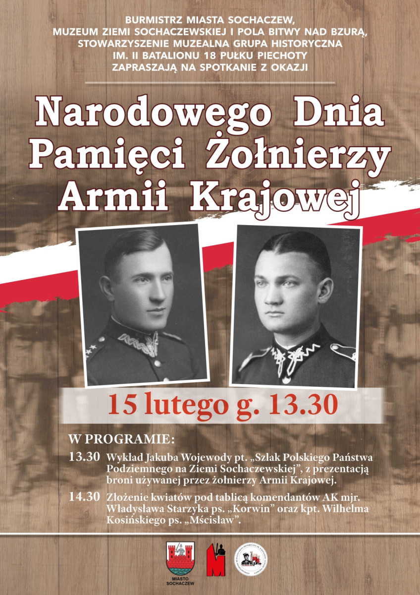 - Po raz pierwszy w Sochaczewie wspólnie ze Stowarzyszeniem MGH im. II bat. 18 pp. będziemy mieli okazję uhonorować Narodowy Dzień Pamięci Żołnierzy AK rocznicowym wykładem, prezentacją broni oraz złożeniem kwiatów przed pamiątkową tablicą poświęconą komendantom sochaczewskiego obwodu AK - dzień później, czyli w niedzielę 15 lutego –
