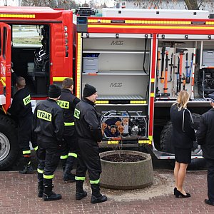 - Wóz wyposażony jest w zbiornik wody o pojemności 4 000 litrów. Do tego jeszcze jest zbiornik pianotwórczy o pojemności 10% zbiornika, czyli jest to 400 litrów. Pojazd ma też maszt oświetleniowy. To, co zmienia diametralnie nasze możliwości, jest hydraulika. Dzięki niej będziemy mogli jeździć do wypadków i pomagać ludziom. Niestety w starym wozie nie było na to miejsca. Jest to hydraulika numeru czwartego, czyli bardzo mocno rozbudowana. Jest rozpieracz, nożyce i dwa rozpieracze kolumnowe –