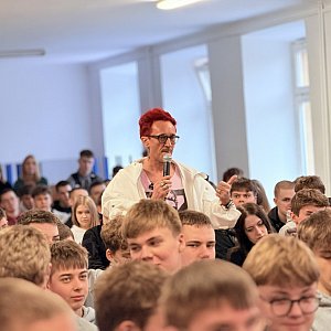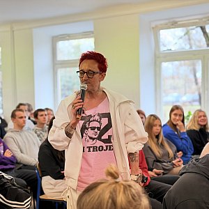– Mam 54 lata i jestem przede wszystkim ojcem – tak przedstawił się młodzieży na początku rozmowy. – Mam sześcioro dzieci. O hejcie wiem bardzo dużo, ponieważ całe życie się z nim mierzę. Towarzyszy mi od dzieciństwa. W wieku 2 lat zostałem zabrany z domu rodzinnego – miałem wyjątkowo trudne dzieciństwo. Mam piątą żonę. Chcę być szczęśliwy, ale trudno być szczęśliwym w związku ze mną, bo moje życie jest szeroko komentowane. Nie jestem dumny z tego, jak potoczyło się moje życie. Negatywne doświadczenia pozostawiły ślad w mojej psychice i psychice moich dzieci.