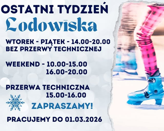 - Jeśli jeszcze nie byliście na łyżwach – to najlepszy moment, żeby nadrobić zaległości! Jeśli byliście – wpadnijcie raz jeszcze i zakończcie sezon razem z nami. Nie przegapcie ostatnich dni zimowej zabawy na lodzie! Zabierzcie rodzinę, znajomych i do zobaczenia na tafli! -
