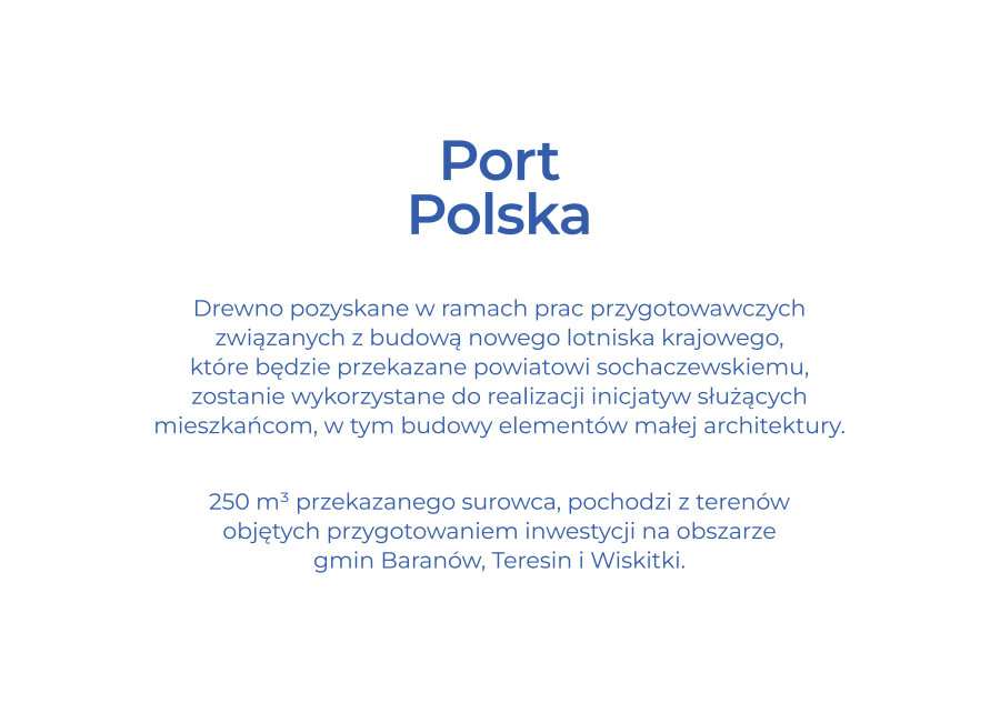 Powiat sochaczewski otrzymał wsparcie rzeczowe od spółki Centralny Port Komunikacyjny, realizującej program inwestycyjny Port Polska w postaci drewna pozyskanego w ramach prac przygotowawczych, związanych z budową nowego lotniska krajowego.