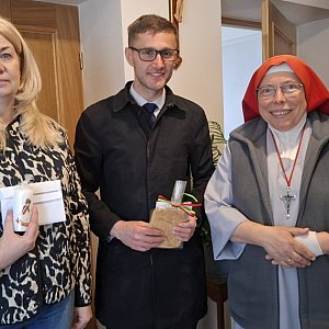 Na ręce Siostry Przełożonej przekazano świąteczne upominki oraz złożono życzenia zdrowych, spokojnych i pełnych nadziei Świąt Wielkanocnych.