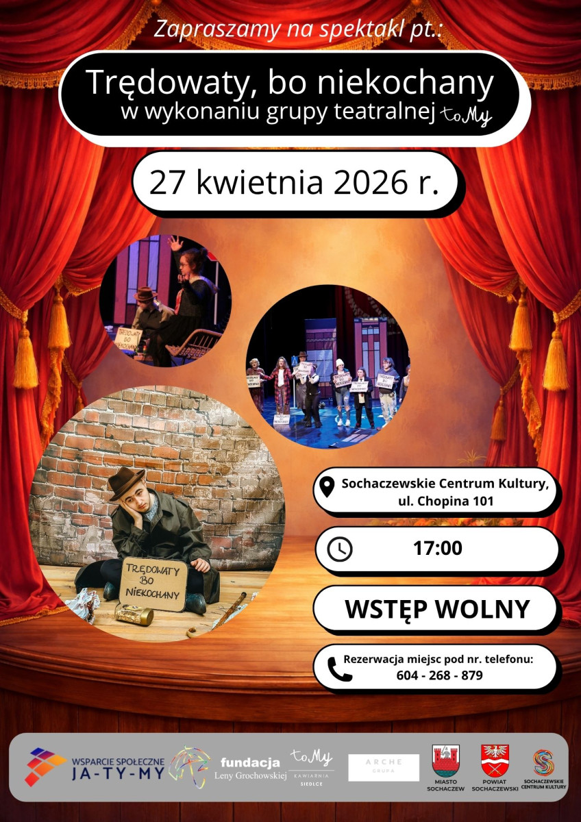 - To są wspaniali aktorzy, którzy pokazują, że mimo niepełnosprawności można występować na bardzo wysokim poziomie. Cieszymy się, że grupa teatralna przyjęła zaproszenie Warsztatu Terapii Zajęciowej Ja-Ty-My w Sochaczewie i wystąpią dla naszych mieszkańców. Oczywiście mogliśmy tu liczyć na współpracę ze strony starostwa powiatowego w Sochaczewie, miasta Sochaczew, SCK i stowarzyszenia Ja-Ty-My. Serdecznie zapraszamy, wstęp jest wolny –