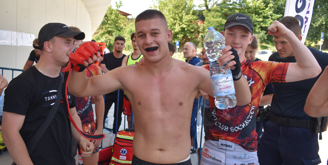 Sobota słońcem rozpieszczała. Choć plażowiczom na bulwarach i w okolicy Bzury mogłoby się to podobać, to zawodnikom MMA walczących w dwóch oktagonach taka pogoda dawała się we znaki. Było gorąco, dosłownie i w przenośni. Widowiskowe walki Amatorskiej MMA tym razem można było oglądać u podnóża sochaczewskiego zamku, a dokładniej na scenie amfiteatru.
