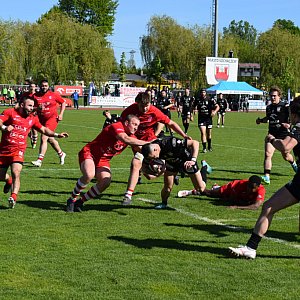 Mecz, choć wygrany, obfitował w przerwy. Zawodnicy mozolnie ustawiali się do młyna i autów. Dynamicznych akcji w pierwszych minutach meczu było jak na lekarstwo. "Bujnęło się" po kwadransie. Rugbiści Macieja Brażuka i Tomasza Malesy zaczynali zaznaczać swoją przewagę. Widać było, że zależy im na punktach i dobrym wyniku. Walka toczyła się nie tylko o zwycięstwo, ale i utrzymanie drugiego miejsca dającego prawo gry w finale. Swój mecz dzień wcześniej wygrało Ogniwo, które pokonało Juvenię za 5 punktów. Kilka minut później drugie przyłożenie po efektownym slalomie zaliczył Marcin Krześniak. Przed przerwą punktował jeszcze Jonathan O’Neill.