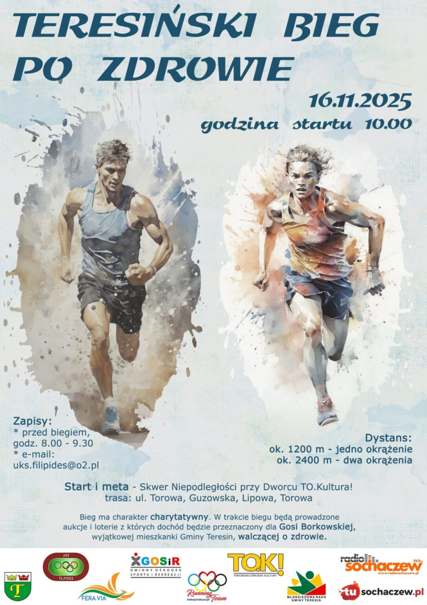 W Teresinie 16 listopada wystartuje kolejna edycja Teresińskiego Biegu po Zdrowie. Tym razem fani aktywności fizycznej pobiegną ku pomocy walczącej o zdrowie Gosi Borkowskiej. Wydarzenie od lat łączy lokalną społeczność, promuje zdrowie oraz zachęca do pomocy.