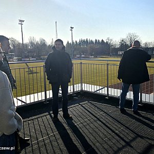 - Radni miejscy Jolanta Gerasik, Arkadiusz Karaś, Tomasz Malesa i Łukasz Popowski wraz z zastępcą burmistrza Stanisławem Wachowskim, w obecności dyrektor MOSiR Izabeli Wojdyno odwiedzili wczoraj teren budowy kompleksu sportowego MOSiR. Na miejscu zapoznali się z aktualnym stanem prac, a kierownik budowy szczegółowo odpowiadał na wszystkie pytania. Z przekazanych informacji wynika m.in., że inwestycja powinna być gotowa do odbiorów do końca czerwca, za 2–3 tygodnie uruchomiona zostanie nowa kotłownia gazowa, a na kortach tenisowych wkrótce pojawi się warstwa mączki o grubości ok. 25 mm -