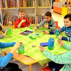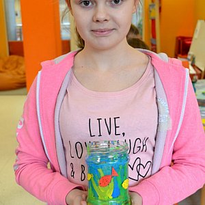 W drugim tygodniu ferii powstał podwodny świat, czyli morskie cudeńka w słoikach, będące niezwykłą ozdobą naszej biblioteki.