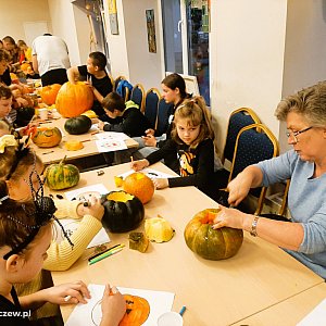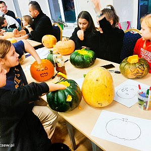 Blisko 160 uczestników spędziło wspólnie z nami czas podczas świetnej zabawy. Nie zabrakło konkursów, wspólnej zabawy i integracji. A wszystko za sprawą dyni. W tych dniach ten symbol jesieni stał się inspiracją dla wyobraźni i kreatywności. Powstały dyniowe obrazki, kolorowanki, wycinanki, lampiony a nawet dyniowe przebrania! Radosne i uśmiechnięte buzie dzieci to najlepszy dowód na to, że zabawa się udała.