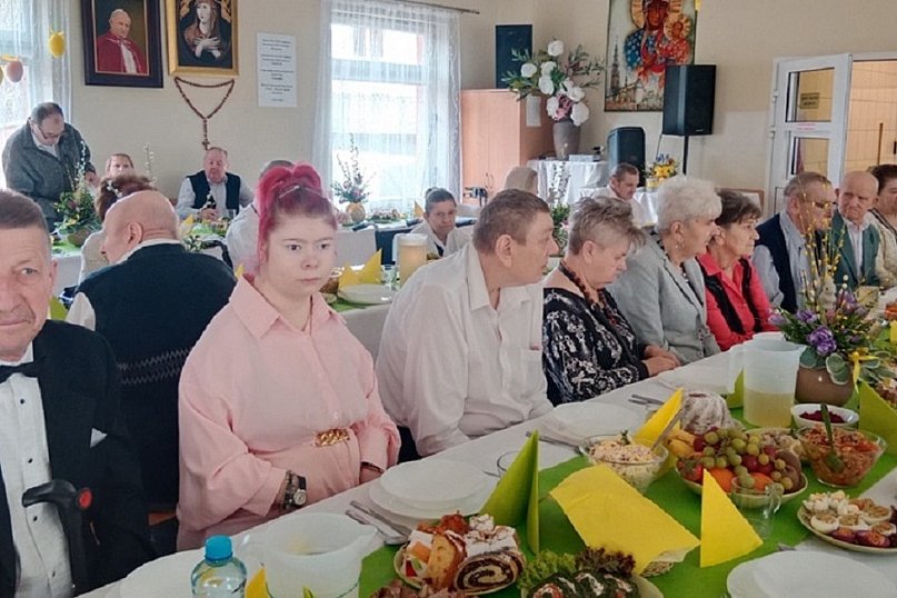 Obiad wielkanocny w Domu Pomocy Społecznej w Młodzieszynie to wielkie przeżycie dla mieszkańców.