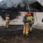 17.12.2025 Łaziska: drewniany dom spłonął całkowicie, na miejscu aż 8 samochodów straży