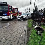 Samochód osobowy zjechał z jezdni, uderzył w pobliskie ogrodzenie i potrącił kobietę idącą chodnikiem. Piesza, po udzieleniu pomocy medycznej, została przetransportowana do szpitala -