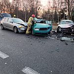 Zderzenie trzech samochodów na DK 92, droga zablokowana