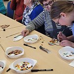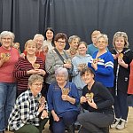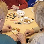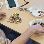 Podczas spotkania seniorzy wzięli udział w warsztatach z mozaiki, które poprowadziła pani Natalia. Zajęcia odbywały się w przyjaznej i spokojnej atmosferze, sprzyjającej zarówno pracy twórczej, jak i relaksowi. Uczestnicy z zaangażowaniem tworzyli własne mozaiki, dzieląc się pomysłami i doświadczeniem.