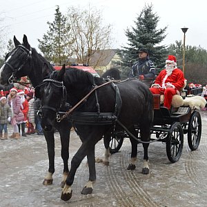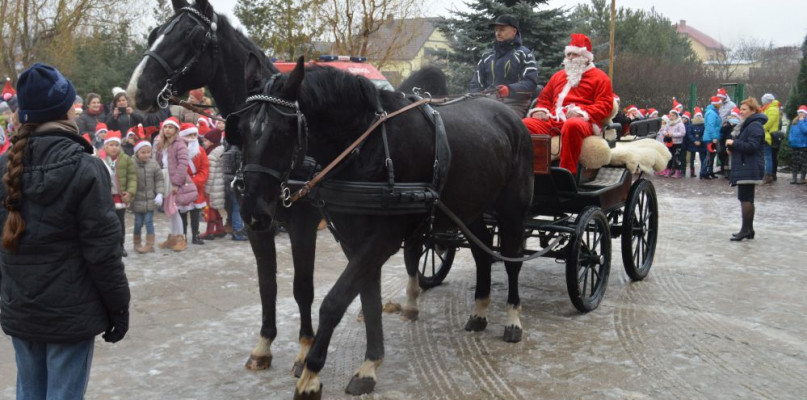 Na plac przed szkołą w Młodzieszynie Mikołaj przyjechał bryczką, do której - co prawda - nie były zaprzęgnięte renifery, ale dwa konie. Przyjazd Świętego Mikołaja spowodował mnóstwo uśmiechów na twarzach uczniów szkoły podstawowej i gimnazjum.