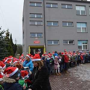 Po uroczystej przemowie Dyrektora Szkoły, Dariusza Kosińskiego, uczniowie udali się na salę gimnastyczną, gdzie Pani Wójt, Monika Pietrzyk, przeczytała najmłodszym bajkę o Świętym Mikołaju.