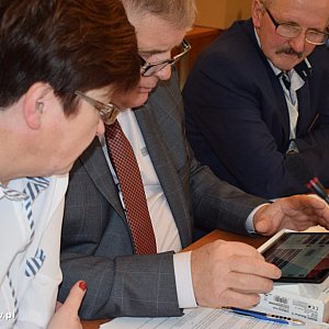 Podczas dzisiejszej sesji radni gminy Sochaczew mieli w tym względzie swój debiut. Z powodu transmisji na żywo i montażu kamer po latach zdecydowano nawet o innym ustawieniu stołów, by te były lepiej widoczne w kamerze. Nowość stanowił też elektroniczny system głosowania. Na terenie powiatu sochaczewskiego wygląda on różnie, w zależności od wyboru firmy, która obsługuje dany samorząd w zakresie transmisji. W gminie Sochaczew, tak jak w gminie Nowa Sucha, radni do głosowania otrzymali specjalne tablety, na których – przy pomocy palca - nie tylko mogą oddawać swoje głosy, ale też przeglądać aktualne uchwały. Debiut wypadł dobrze, system się sprawdził, a radni szybko – przy pomocy instruktarzu Wiesławy Dałkiewicz – opanowali obsługę swoich tabletów.