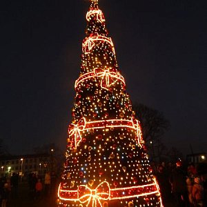 W tym roku choinka po raz pierwszy stanęła nie tylko na rynku, ale też i w parku Bajka. Uroczystego "odpalenia" dokonał burmistrz Zenon Reszka, który później razem z Mikołajem rozdawał dzieciom cukierki.
