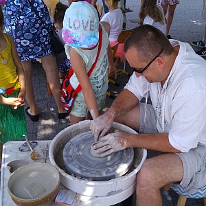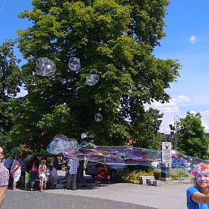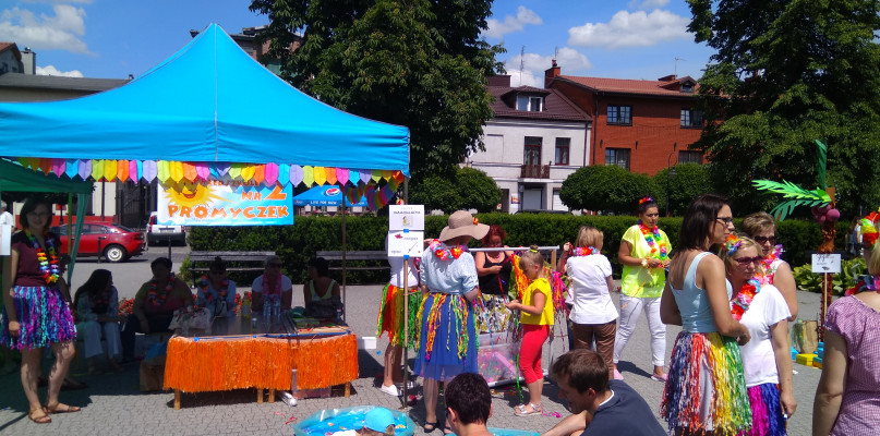 A na błońskim rynku odbyła się zabawa na hawajskiej plaży. Była fontanna, przepiękne zielone palmy, a ze sceny unosiły się bańki mydlane. Dzieci mogły ozdobić buzie i wykonać wakacyjną fryzurę. Pogoda zachęciła do uczestnictwa całe rodziny.