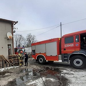 Po dojeździe na miejsce okazało się, że w jednym z pomieszczeń w budynku gospodarczym w miejscowości Giżyce doszło do pożaru. Ogień został szybko ugaszony. Nie było osób poszkodowanych.