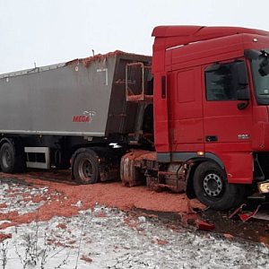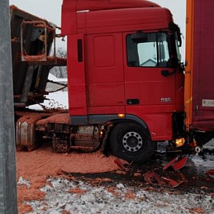 Po dojeździe stwierdzono, że doszło do najechania ciągnika siodłowego marki DAF na tył naczepy sprzężonej z ciągnikiem siodłowym Renault. Samochodami poruszali się wyłącznie kierujący, którzy nie odnieśli żadnych obrażeń. Ponadto w wyniku zdarzenia z jednej z naczep wypadł na drogę przewożony nią ładunek.