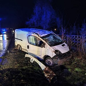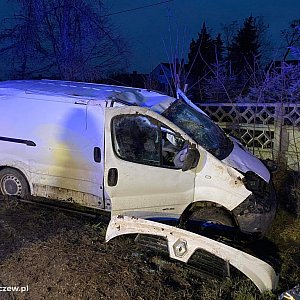 Po dojeździe stwierdzono, że samochód osobowy Renault Trafic zjechał do przydrożnego rowu. Pojazdem podróżowały trzy osoby, które pozostawały wewnątrz pojazdu.