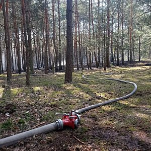 - Zostaliśmy zadysponowani do pożaru lasu zadanie straży polegało na podaniu kilku prądów wody dokładnym przelaniu pogorzeliska zbudowaniu magistrali wodnej oraz jej dowożenia około godziny 20.30 powróciliśmy do koszar -