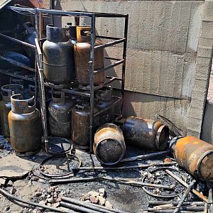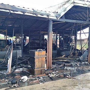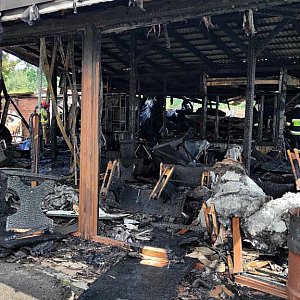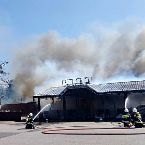 - W ponad 30-stopniowym upale przyszło nam się dziś zmagać z pożarem lokalu gastronomicznego przy drodze krajowej nr 50 w Młodzieszynku (gmina Młodzieszyn). Zgłoszenie o pożarze otrzymaliśmy kilka minut przed godziną 10. Po przybyciu na miejsce zdarzenia potwierdziły się najgorsze przypuszczenia - ogniem w całości objęty był budynek konstrukcji drewnianej oraz przyległa drewniana wiata. Pracownicy lokalu ewakuowali się przed naszym przybyciem i nie wymagali pomocy medycznej. Nasze działania w pierwszej fazie polegały na zabezpieczeniu miejsca zdarzenia, odłączeniu dopływu prądu oraz wyznaczeniu strefy niebezpiecznej w związku ze znajdujący się wewnątrz butlami z gazem. Pożar ugaszono trzema strumieniami wody, zaś czwarty podano w obronie pobliskiego składowiska palet. Po ugaszeniu pożaru schładzano butle oraz kontrolowano temperaturę ich płaszczy kamerami termowizyjnymi. Wykonano także pomiary na obecność gazu w powietrzu.