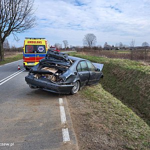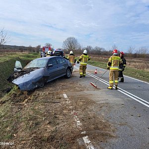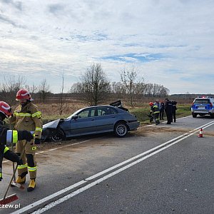 W niedzielę 10 marca przed godziną 11.00 dyżurny Stanowiska Kierowania przyjął zgłoszenie o zdarzeniu drogowym na DW 575 w miejscowości Nowy Kamion, gmina Młodzieszyn. Przybyli na miejsce strażacy stwierdzili, że samochód osoby dachował. Jedna osoba została poszkodowana i trafiła do szpitala. Na zadysponowano po jednym zastępie z Ochotniczej Straży Pożarnej w Śladowie i Przęsławicach, policja i pogotowie.