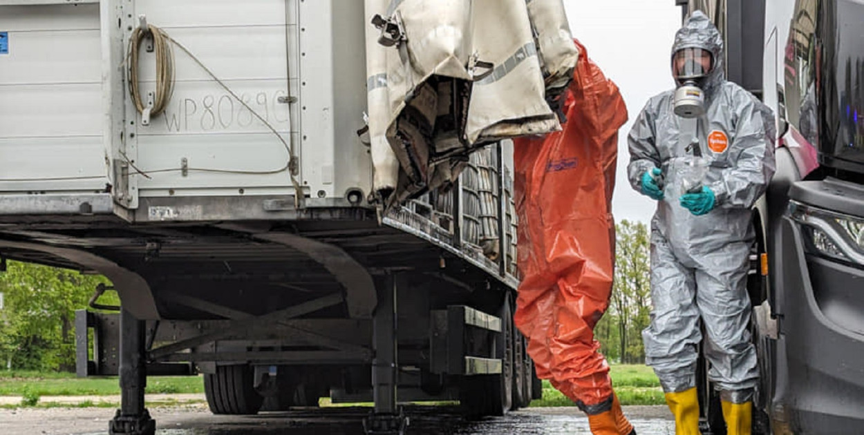 - Od godzin porannych prowadzimy działania na terenie parkingu przy stacji paliw w Kożuszkach-Parcel, gdzie doszło do wycieku substancji chemicznej z naczepy samochodu ciężarowego. Przeprowadzone pomiary atmosfery nie wykazały zagrożenia dla okolicznych mieszkańców. Stacja pozostaje wyłączona z użytkowania, brak utrudnień w ruchu. Na miejscu 8 samochodów straży pożarnej, w tym Specjalistyczna Grupa Ratownictwa Chemiczno-Ekologicznego z Jednostki Ratowniczo-Gaśniczej PSP nr 6 w Warszawie, inspektorzy ochrony środowiska oraz policja -