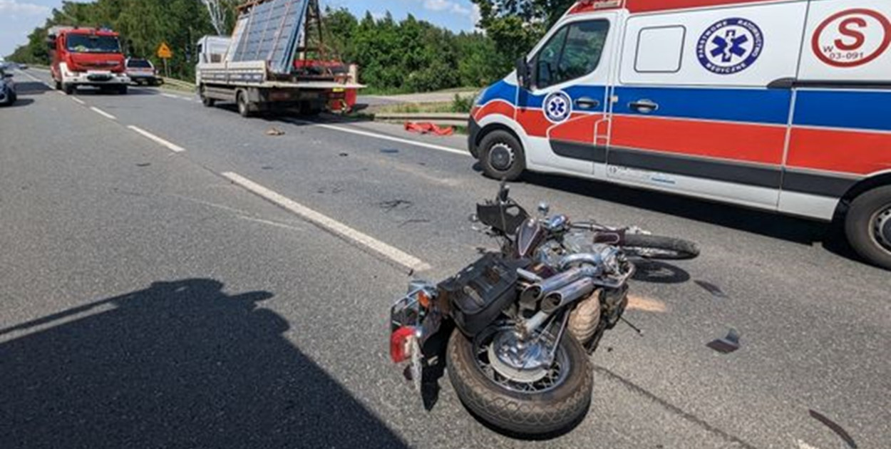 Po dojeździe okazało się, że w zdarzeniu uczestniczył motocykl oraz dwa samochody ciężarowe. Kierujący jednośladem, nieprzytomny, znajdował się pod jedną z ciężarówek.