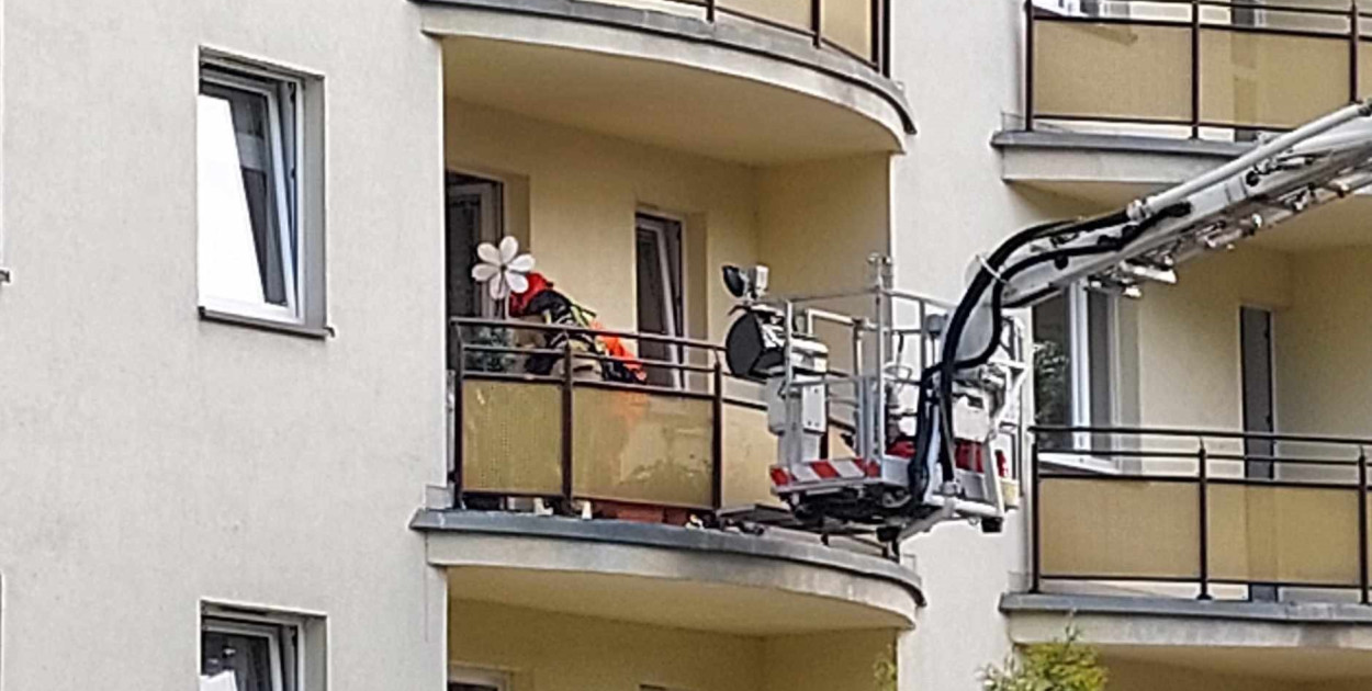 Przy ulicy Aleksandra Sochaczewskiego trwała nietypowa interwencja straży pożarnej. Na jednym z balkonów znajdował się mężczyzna, który potrzebował pomocy medycznej. Strażacy za pomocą podnośnika dostali się do poszkodowane i umożliwili dostęp ratownikom Zespołu Ratownictwa Medycznego.