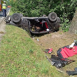 Dziś po godzinie 14, w ciągu DW705 na ulicy Skierniewickiej w Kozłowie Biskupim (gmina Nowa Sucha), doszło do dachowania samochodu osobowego.