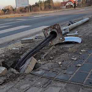 W poniedziałek 3 marca niedługo przed północą, około godziny 23.30, swój pionowy żywot stracił sygnalizator świetlny przy al. 600-lecia, w pobliżu skrzyżowania z Trojanowską i Staszica.