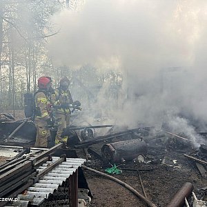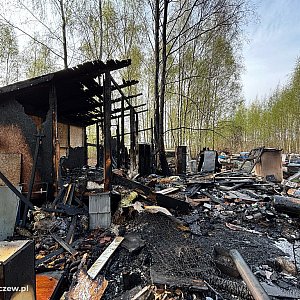 - W chwili przybycia strażaków ogniem w całości objęty był budynek gospodarczy konstrukcji drewnianej o wymiarach około 5 x 8 metrów. Zagrożenie zostało szybko zażegnane dwoma strumieniami wody –