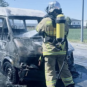 O 10.37 do straży pożarnej w Sochaczewie wpłynęła informacja o pożarze samochodu w Topołowej.