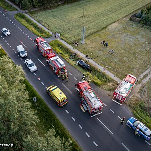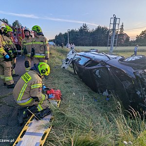 - Przybyli na miejsce strażacy zastali samochód osobowy leżący na boku w przydrożnym rowie, a w jego wnętrzu pozostawał poszkodowany, przytomny kierujący. Strażacy przy użyciu narzędzi hydraulicznych utworzyli dostęp do poszkodowanego, a następnie go ewakuowali i przekazali zespołowi ratownictwa medycznego. W dalszej kolejności mężczyzną zajęła się załoga Lotniczego Pogotowia Ratunkowego i do szpitala trafił drogą lotniczą. Miejsce zdarzenia do dalszych czynności przekazano funkcjonariuszom Policja Sochaczew –