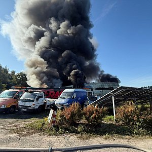 W Bramkach pod Błoniem kilkanaście zastępów straży pożarnej walczy z pożarem hali, należącej do firmy zajmującej się m.in. sprzedażą używanych części samochodowych i ich recyklingiem.