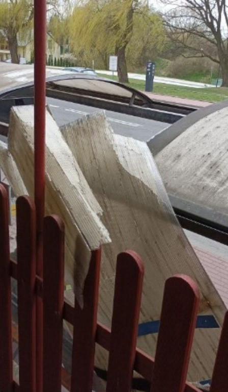 W niedzielę (5 kwietnia 2026 r.) kilka minut przed północą dyżurny sochaczewskiej komendy odebrał zgłoszenie od pracownika monitoringu miejskiego, z którego wynikało, że na ul. Traugutta mężczyzna wszedł na wiatę autobusową. Konstrukcja nie wytrzymała obciążenia, co skutkowało zarwaniem dachu.
