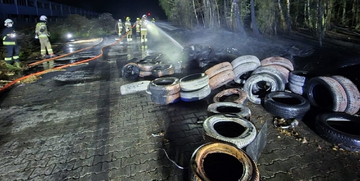 W sobotę 18 kwietnia tuż przed 23.00 w Feliksowie doszło do pożaru sporego składowiska opon. Ogień rozprzestrzeniał się też na pobliski lasek.