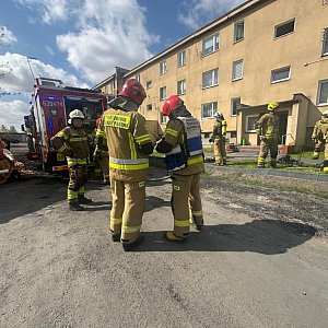 - Za nami wymagające zdarzenie, które zaangażowało 7 zastępów straży pożarnej. W sobotę o godzinie 9:20, otrzymaliśmy zgłoszenie o pożarze piwnicy w budynku wielorodzinnym przy ul. Szkolnej w Szymanowie (gm. Teresin). Przybyli na miejsce strażacy potwierdzili informacje ze zgłoszenia. Ogniem objęty był jeden z boksów piwnicznych, a powstałe w wyniku pożaru zadymienie wypełniło wszystkie trzy klatki schodowe. Strażacy pomogli ewakuować się 8 osobom - 2 ewakuowano podnośnikiem hydraulicznym, 4 przy użyciu drabin przystawnych, a kolejne 2 sprowadzono klatką schodową w kapturach ucieczkowych. W sumie z obiektu ewakuowało się około 30 osób. Strażacy korzystając z kamer termowizyjnych dotarli do palącego się boksu, który ugaszono strumieniem wody. W dalszej kolejności pozostało oddymienie pomieszczeń oraz wykluczenie obecności tlenku węgla –